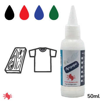 Inchiostro per tessuti resistenti anche ai comuni solventi utilizzati nel lavaggio a secco. Rimane umido nel tampone per circa 1 ora. (consigliato l’acquisto del CLEANER per “riattivare” tampone e timbro quando si seccano)